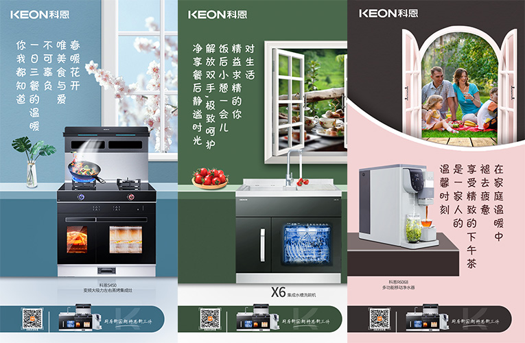 國潮正當時,隨著國貨的崛起,消費者更加開始關注高端新國貨!科恩集成灶為千萬家庭打造樂享智慧廚房空間,創新設計、高端品質、優良服務、優質體驗贏得了用戶的高度認可。順應“國潮”趨勢,提煉“新國貨新潮牌”理念,結合“廚房新國潮,科恩新三件”,以滿足現代年輕群體對國貨的審美與品質認知,以匠心科技實現現代廚房功能需求。