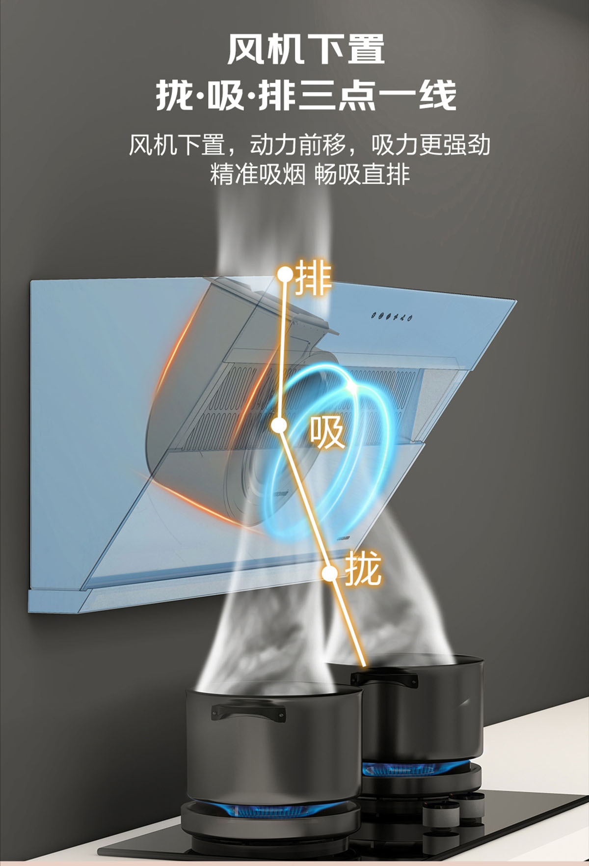 攏、吸、排三點一線,暢吸直排,高效凈煙