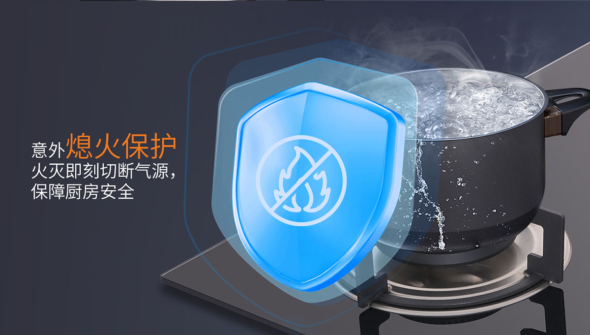 - 意外熄火保護,火滅即刻切斷氣源,保障廚房安全