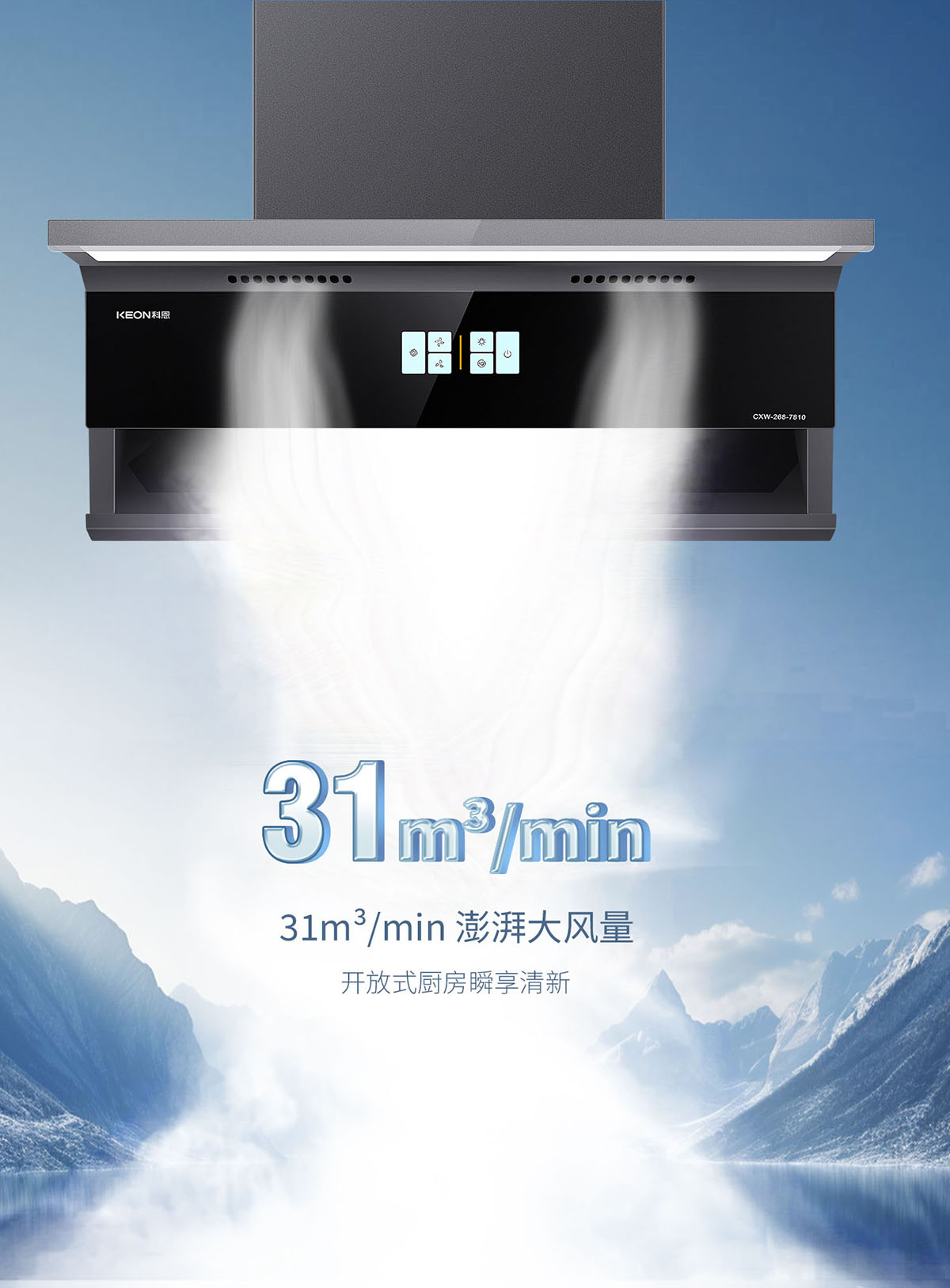 31m³/min 澎湃大風量,爆炒油煙3秒清場