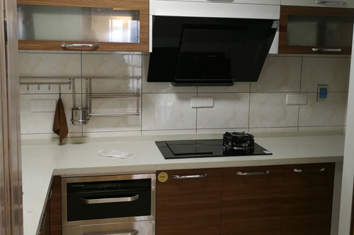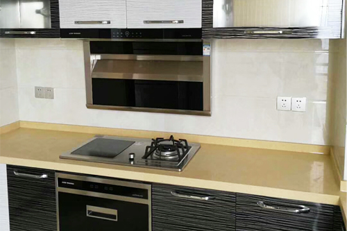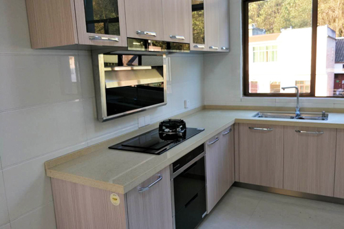 科恩浙江經(jīng)銷商提供的煙灶消+電烤箱、蒸汽爐廚房實景圖